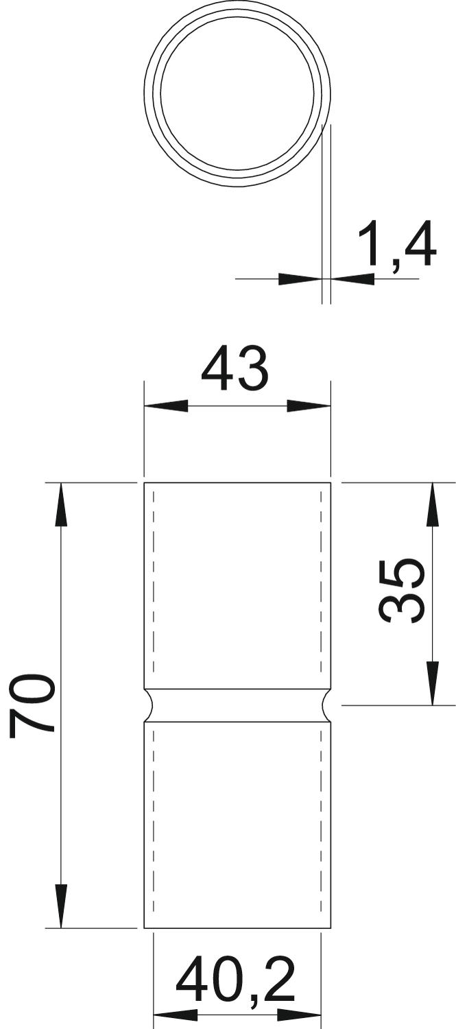 Com escotilha de inspeção e tampa não Comprimento 70 mm Dimensão Ø40mm Duas peças não Gama de temperaturas de aplicação máx. 250 °C Gama de temperaturas de aplicação mín. -45 °C Livre de halogéneos sim Material Alumínio Medida d 40,2 mm Medida D 43 mm Medida L 70 mm Medida l 35 mm Medida t 1,4 mm para diâmetro de tubo 40 mm Superfície escovada não Superfície polida não Tamanho 40 Versão Encaixe - Todos os tipos