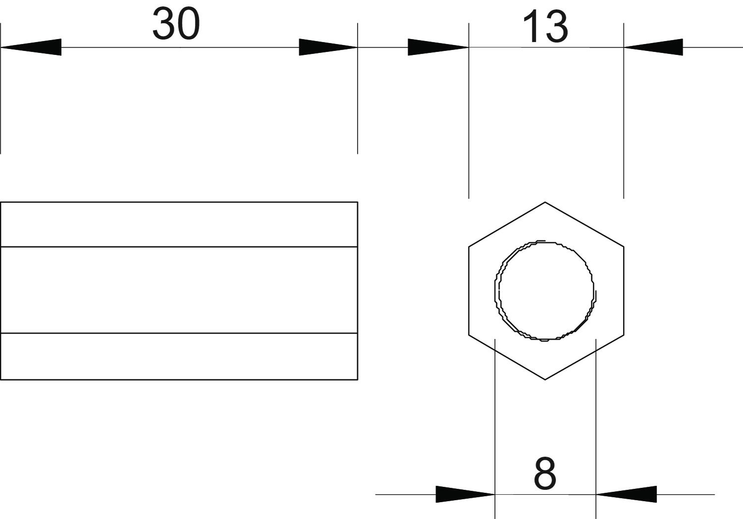 Comprimento 30 mm Dimensão M8x30mm Forma sextavado (hexagonal) Hexagonal sim Largura da chave 13 Material Zinco fundido sobre pressão Medida 1 métrica 8 Medida 2 métrica 8 Medida L 30 mm Pegada de CO2 (GWP) do berço ao portão 0,0905 kg CO2e / 1 Peça Rosca M8 Rosca contínua sim Superfície eletrogalvanizado - Todos os tipos