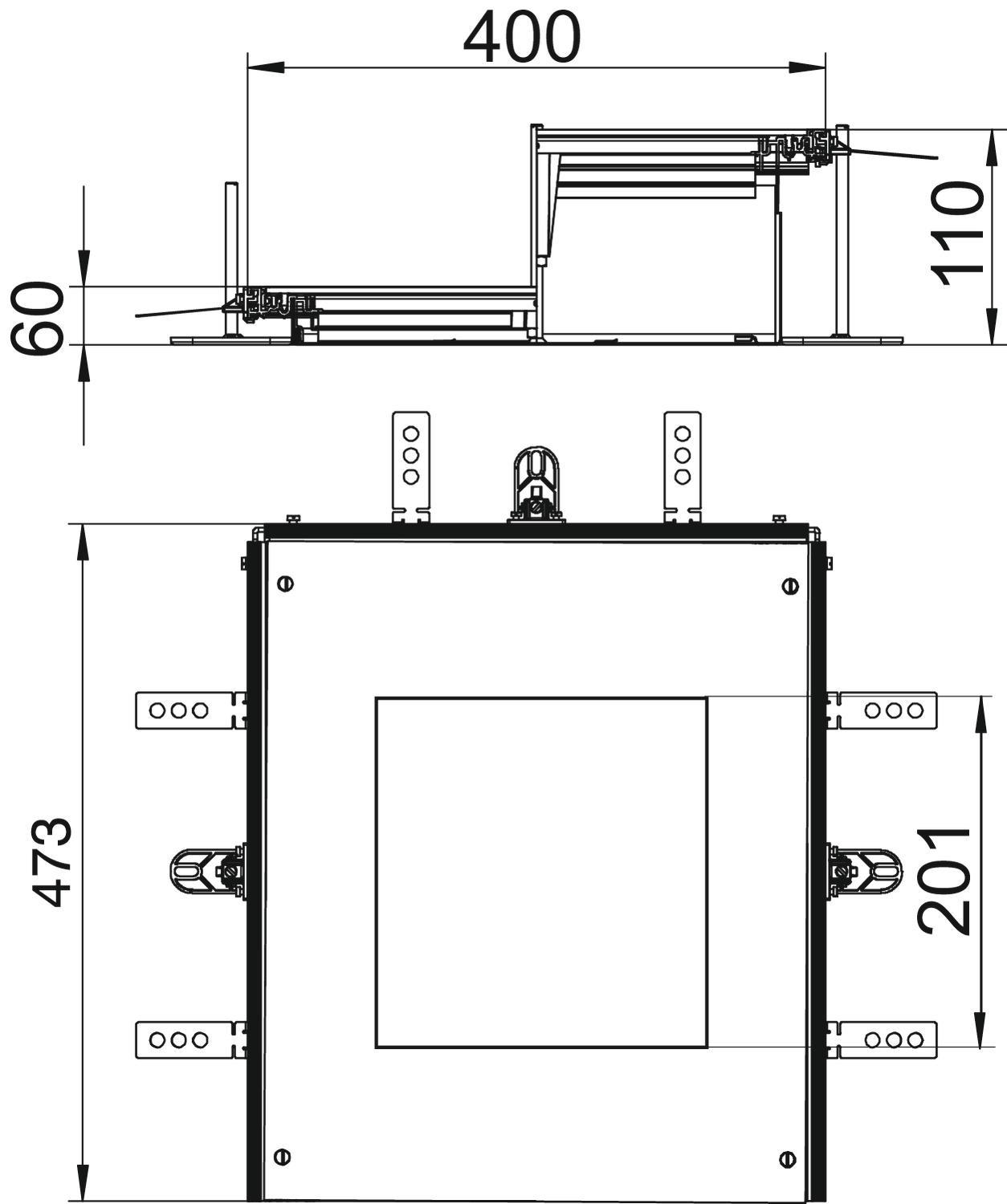 Descrição do produtoCalha, fornecida com abertura na tampa para a instalação de uma tampa de encastramento do tipo GES4, constituída com base e laterais em chapa, perfis de instalação do pavimento, tampa da calha equipada com tampa de obra e um topo. O material fornecido inclui 3 esquadros de fixação com nivelamento de altura, 3 escora estabilizadora, 1 suporte de tampa e 1 kit de montagem de ângulo.