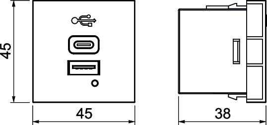 Descrição do produtoUSB charging device with USB Type-A and Type-C sockets for charging 1-2 mobile devices, suitable for vertical installation in the system environment. For installation in the Deskbox DBL.