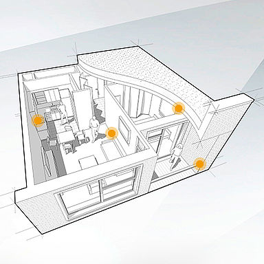 Sistemas de condução de cabos e de chão para edifícios funcionais e arquitetura