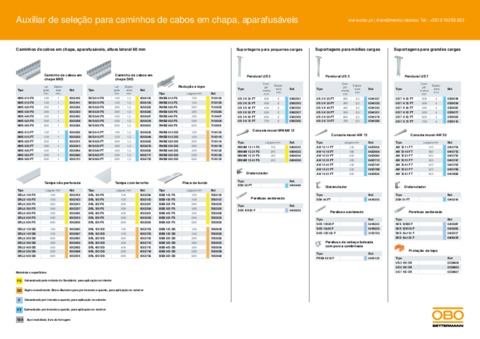 Auxiliar de seleção para caminhos de cabos em chapa, aparafusáveis