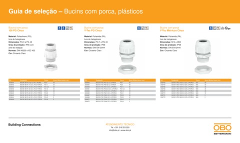 Guia de seleção – Bucins com porca, plásticos