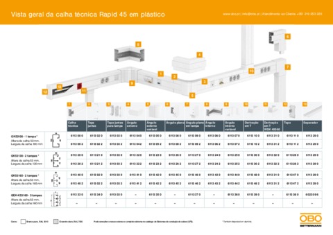 Vista geral de calha técnica Rapid 80 em plástico