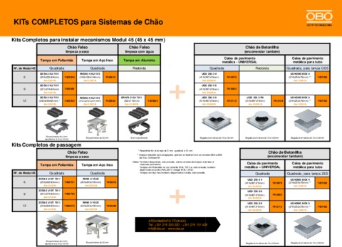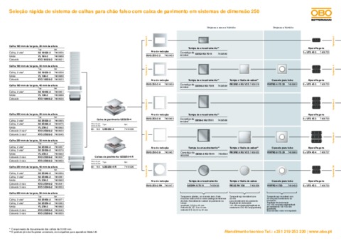 Seleção rápida de sistema de calhas para chão falso com caixa de pavimento em sistemas de dimensão 250