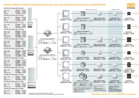 Seleção rápida de sistema de calhas para chão falso com caixa de pavimento em sistemas de dimensão 350
