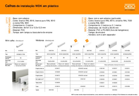 Calhas de instalação WDK em plástico