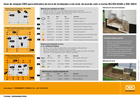 Guia de seleção OBO para elétrodos de terra de fundações e em anel, de acordo com a norma IEC/EN 62305 e DIN 18014