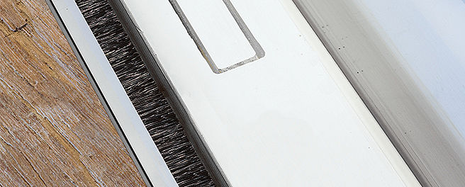 The screed-flush trunking with brush bar is installed at the edge of a side of the room. With regard to footfall noise transmission, the installation of this trunking leads to no worsening of the footfall noise properties in floating cement screen floors. In the case of wall penetrations through partitions with noise protection requirements, noise protection insulation should be installed as required. The air and footfall noise transmission for the OKB brush bar trunking system was evaluated in qualified tests with the MÜLLER-BBM GmbH testing institute in Planegg, Munich.